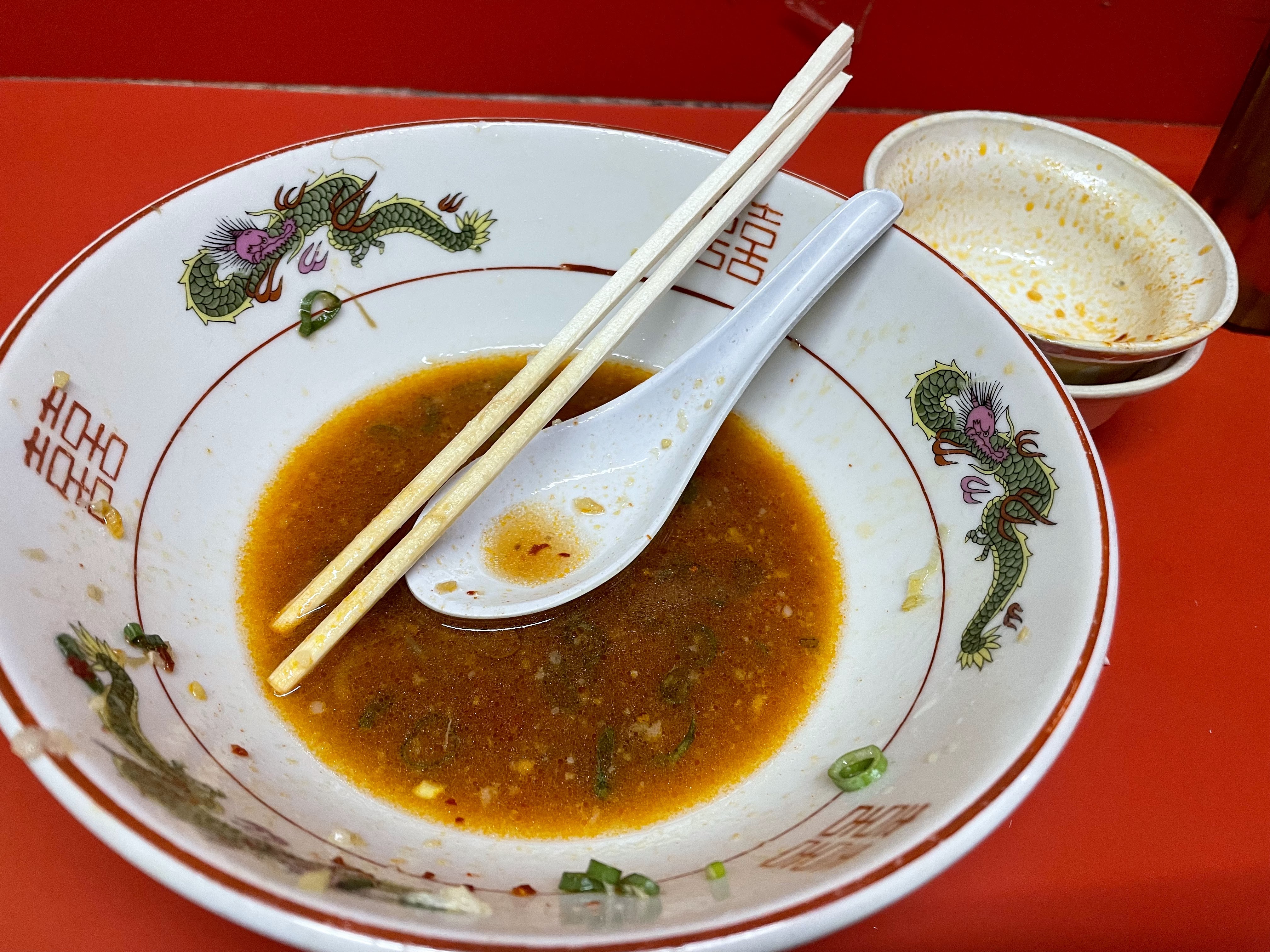 さー豚を食べきったので辛味をスープにリリースしていきます!
